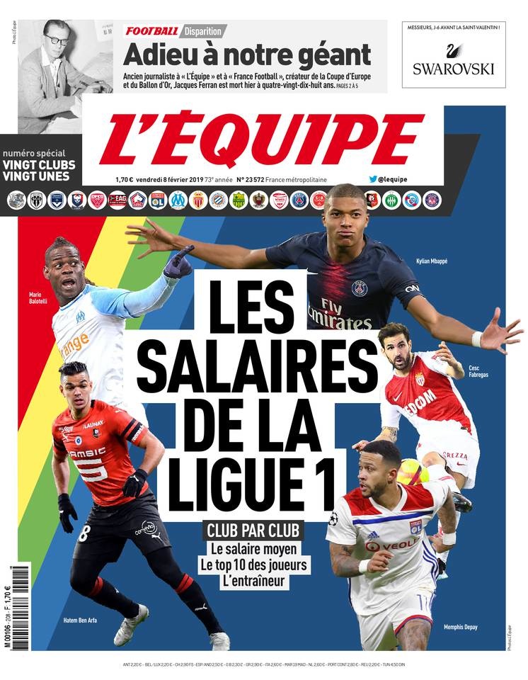 Je me suis servi de l’édito de l’Equipe sur les salaires des joueurs de cette année contrairement à la une :