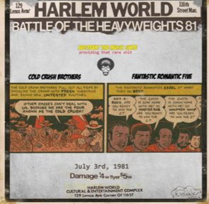 Dans les boites du bronx et d’Harlem, plusieurs centaines de personnes viennent voir des groupes de rap qui s’affrontent grâce au rythme qu’ils jouent, aux rimes qu’ils enchainent et aux sapes qu’ils portent. L’une des plus mythique aura lieu, le 3 juillet 1981 au Harlem World une boite de Harlem,