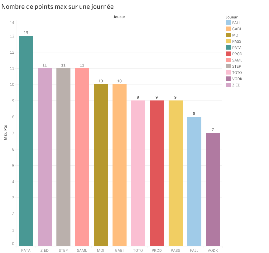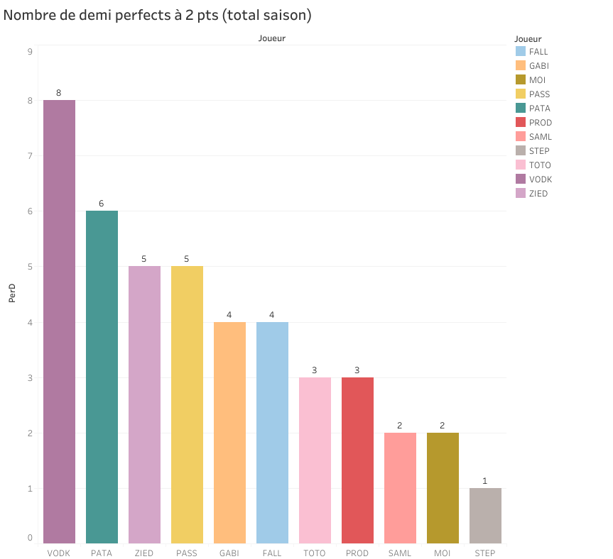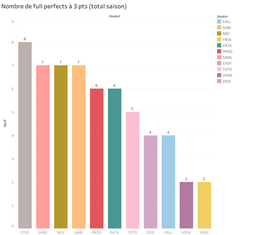 Nombres de perfects (à 2 pts et à 3 pts) par journée