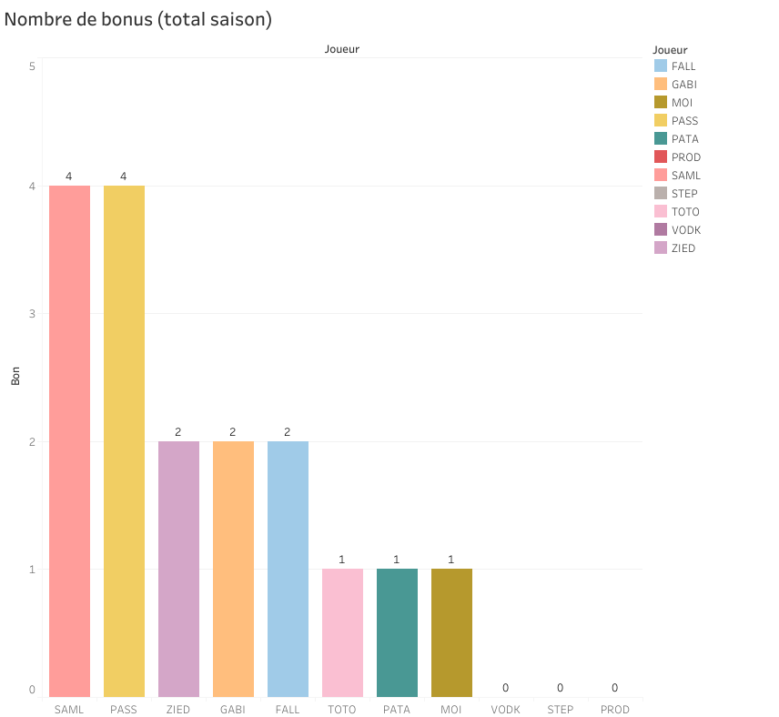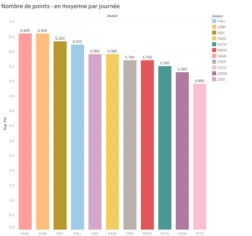 Certaines stats sont des moyennes par journée de participation du joueur, et d’autres sont des totaux sur l’ensemble de la saison.