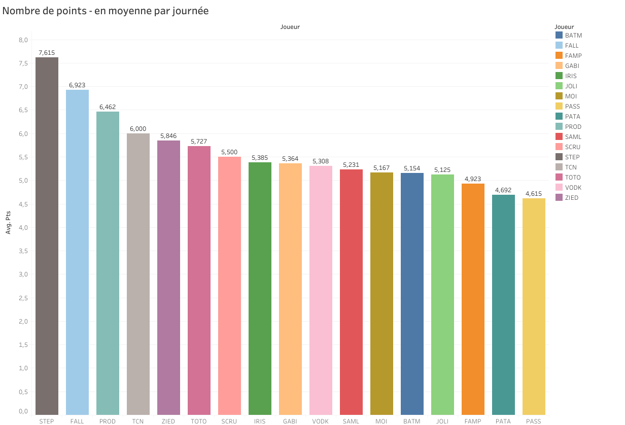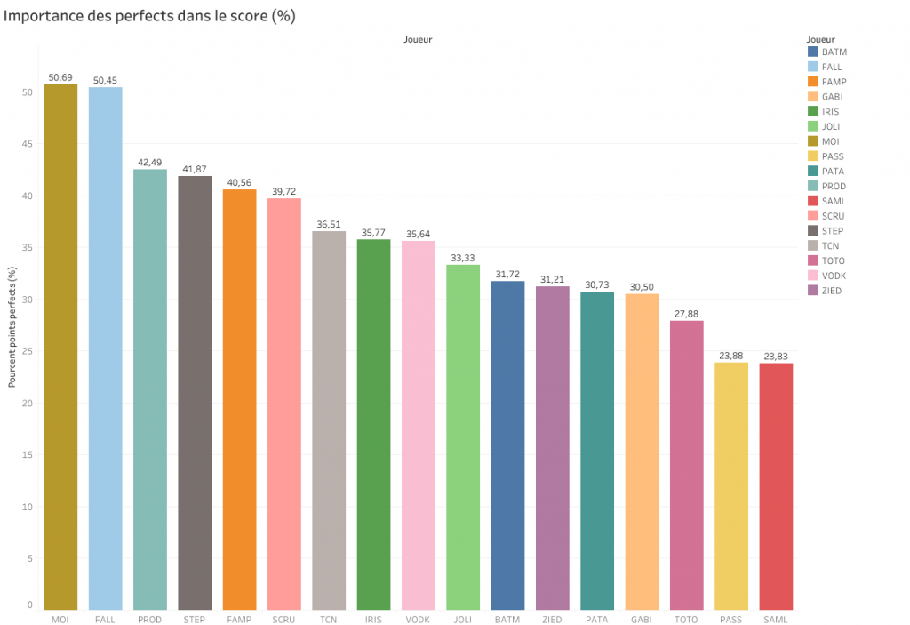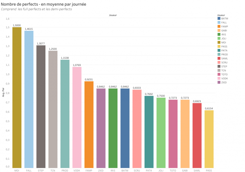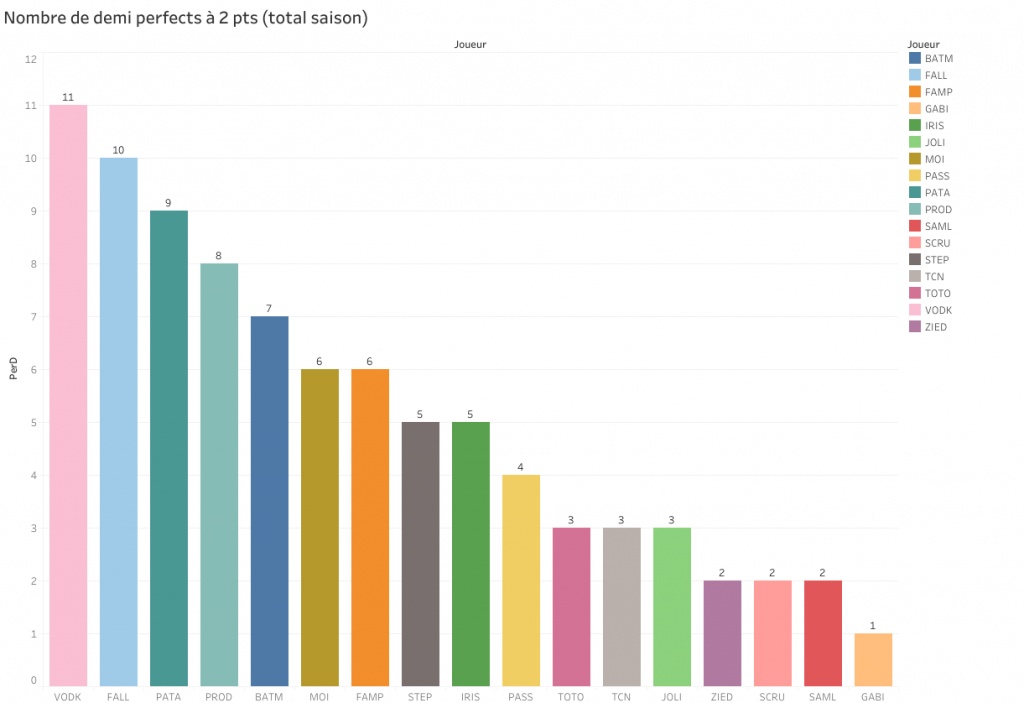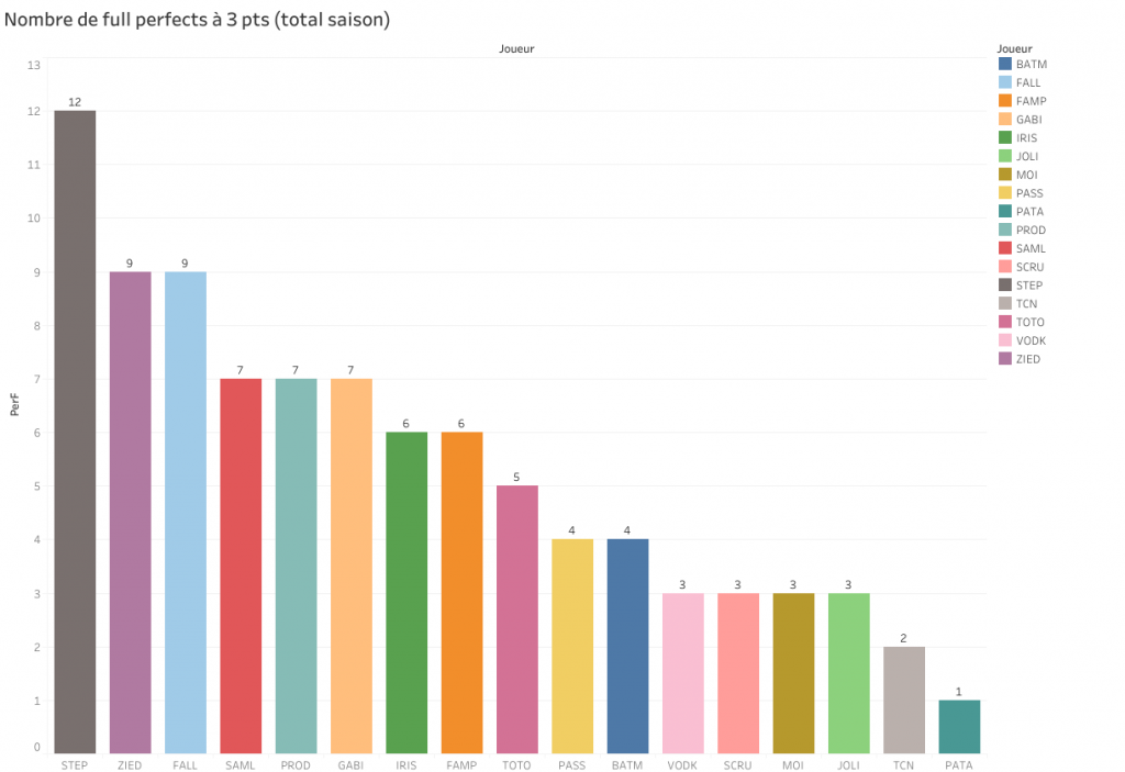 Entre parenthèses le nombre de perfects à 3 pts