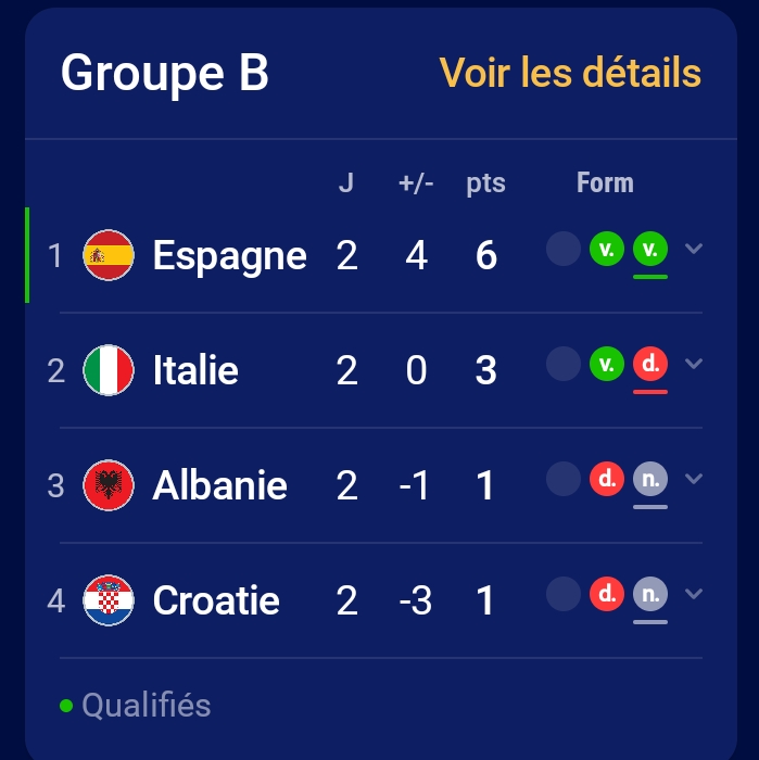 Pour les 8e de finale le 1er du groupe B (Espagne) rencontre un des meilleurs 3e des groupes A/D/E/F